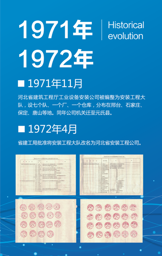 1972年省建工局批準將安裝工程大隊改名為河北省安裝工程公司