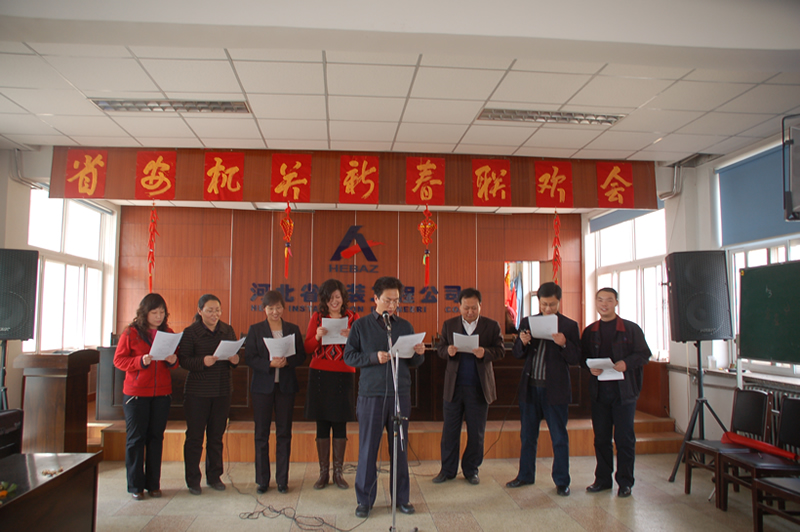 公司機關迎新春聯歡會職工自編自演節目豐富多彩,圖為職工們在進行詩歌朗誦